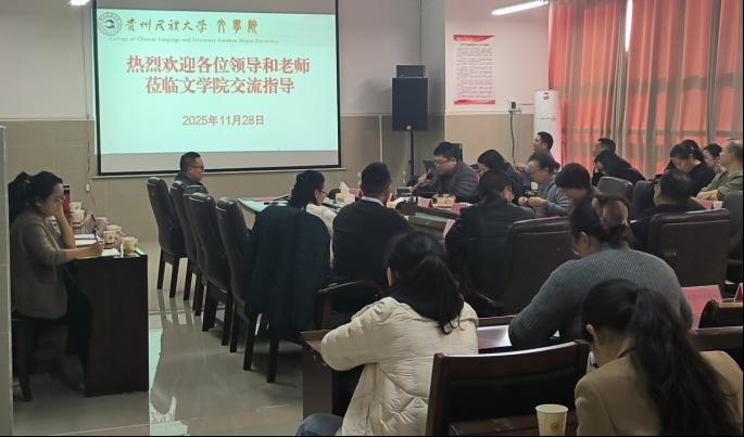 活动伊始,副院长杨锋兵在主持开场时强调,本次活动是学校教学质量提升系列活动的重要环节,旨在搭建一个“观摩研讨、碰撞智慧”的交流平台。随后,文学院院长吴电雷教授作学科专业发展专题汇报,从专业设置、师资力量、学科评估等方面,系统阐述了学院“立足贵州、拓展西南、面向全国”的发展定位,并明确提出2026年完成一级学科博士点申报、在第六轮学科评估中实现等次提升的发展目标。